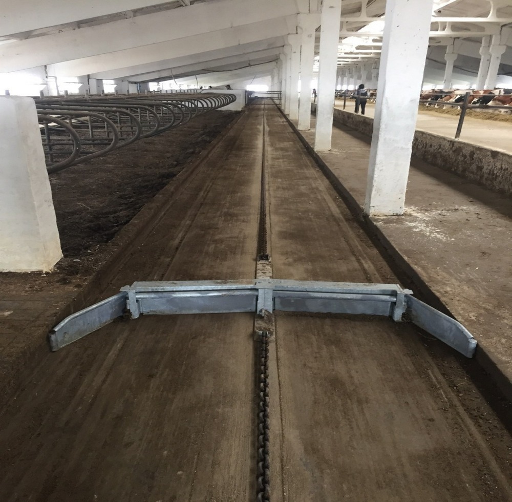 Автоматизированная очистка навозных проходов и поддержание высокого уровня гигиены в коровнике при беспривязном содержании животных.